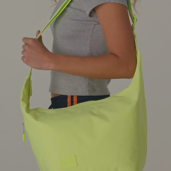 A go-everywhere, do-everything bag for the multitasker who lives life in motion. Wear it two ways: extend the strap to hold maximum gear, or cinch it up for the perfect shoulder companion. Made of an easy-to-clean, water-repellent material and featuring a dedicated bottle holder, this work-hard, play-hard gym partner seamlessly transitions from hot and sweaty to happy-hour ready.