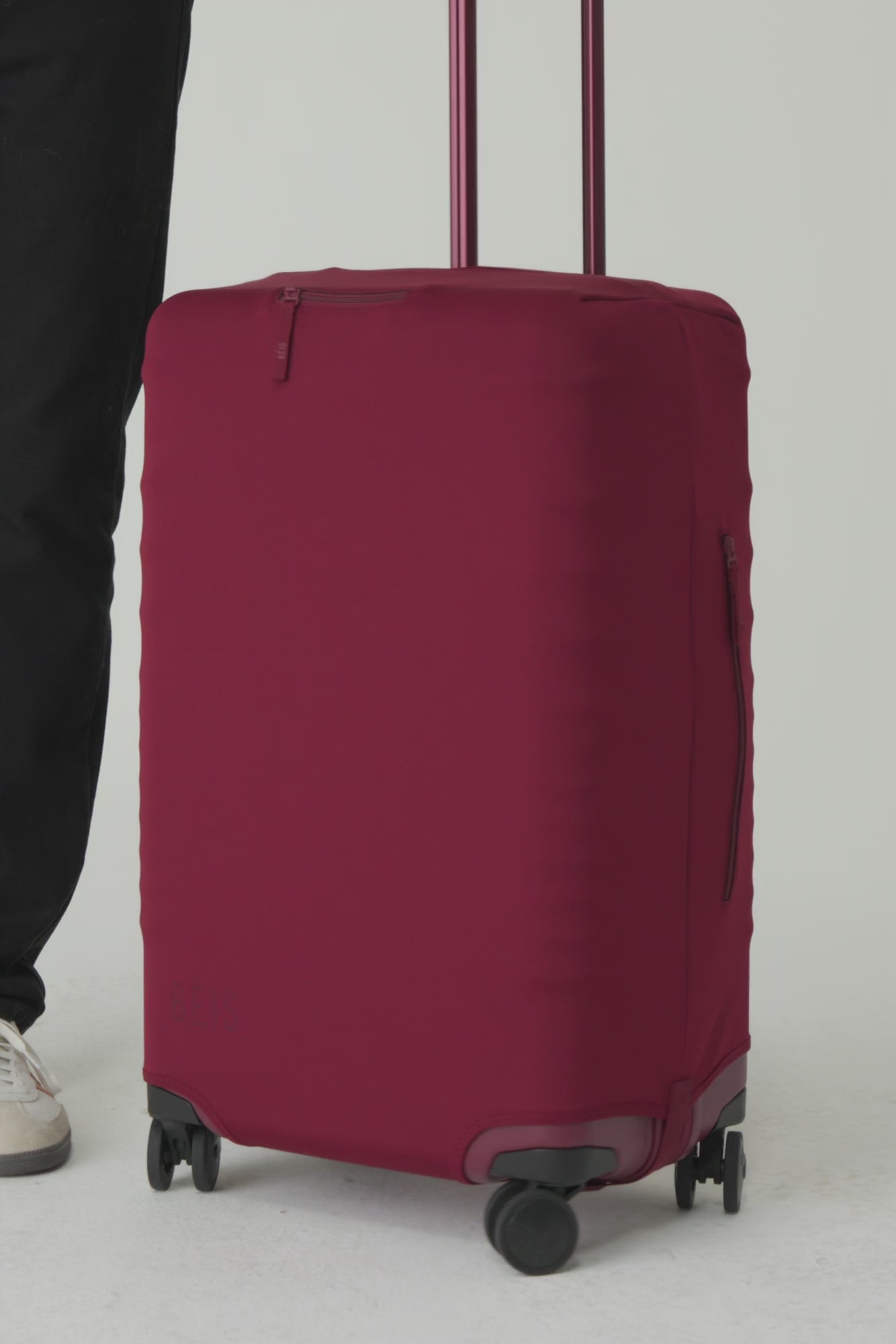 Keep your suitcase protected with a machine-washable luggage cover custom-crafted to fit your BÉIS Medium Check-In Roller size. Made from a lightweight and durable stretch material, this cover provides top-tier protection from dirt, scuffs, and scratches — plus, it’s easier than ever to slide onto your suitcase then fold up and store later. Yep, we’ve got you covered.