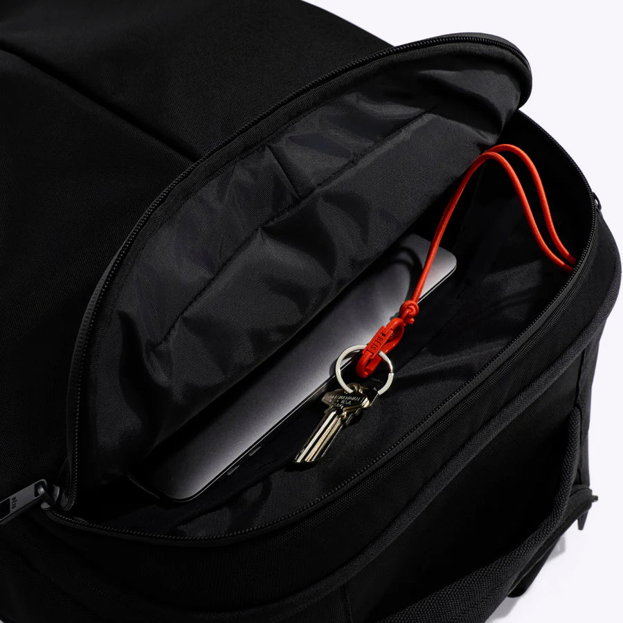 An interior key leash keeps essentials secure and easy to find.