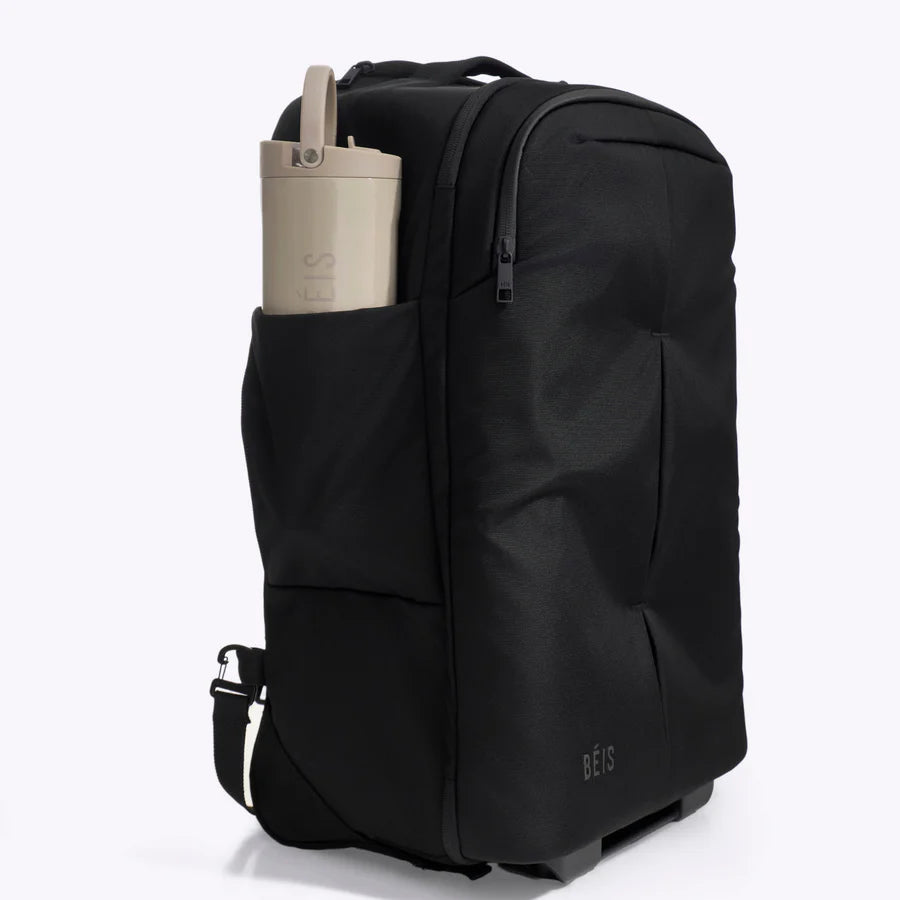 Roll it through terminals, wear it when stairs or crowds slow you down, or stack it onto larger luggage when needed. Designed for fast-paced travel and changing conditions, It's the carry-on that works with your travel reality—gate sprints and all. BÉIS Limited Lifetime Luggage Warranty included. *Please note External locking Zipper pullers need to be locked/connected prior to check in.