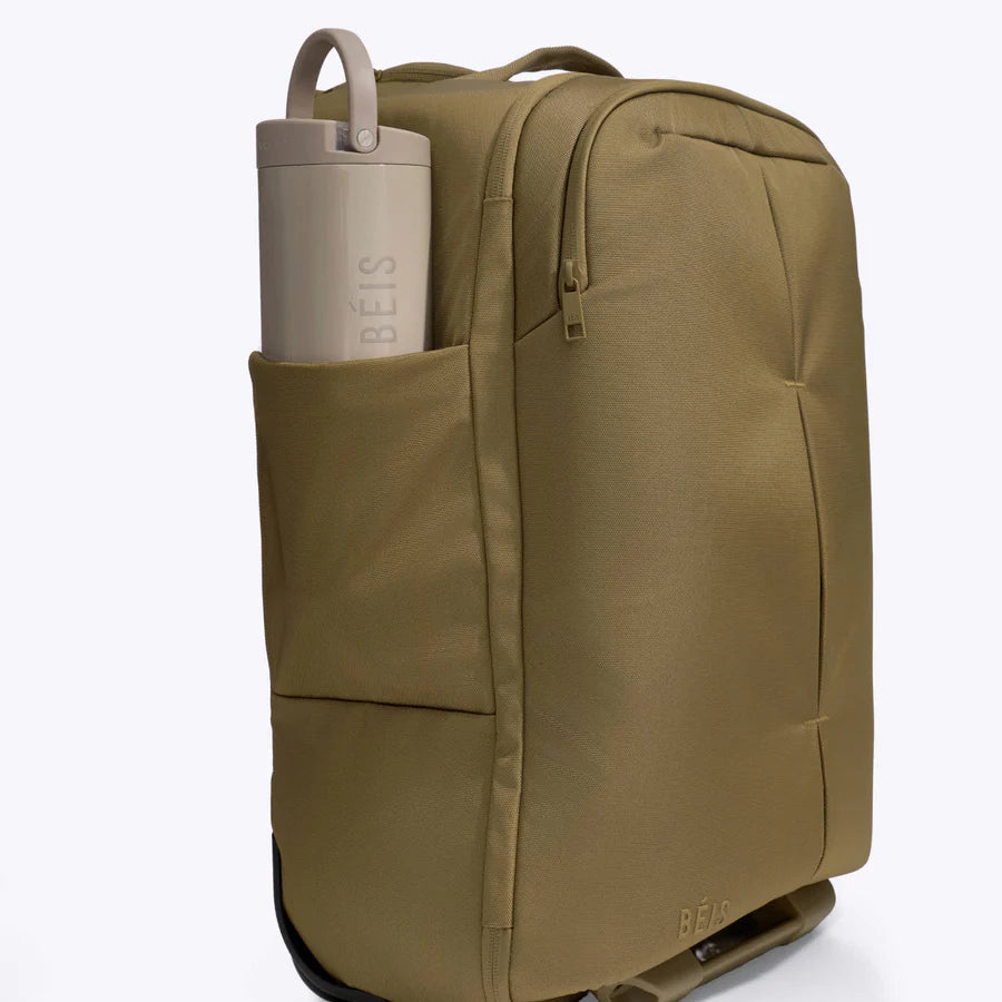 Roll it through terminals, wear it when stairs or crowds slow you down, or stack it onto larger luggage when needed. Designed for fast-paced travel and changing conditions, It's the carry-on that works with your travel reality—gate sprints and all. BÉIS Limited Lifetime Luggage Warranty included. *Please note External locking Zipper pullers need to be locked/connected prior to check in.
